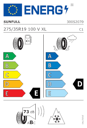 Il pneumatico ha le seguenti caratteristiche in base all'etichetta europea: